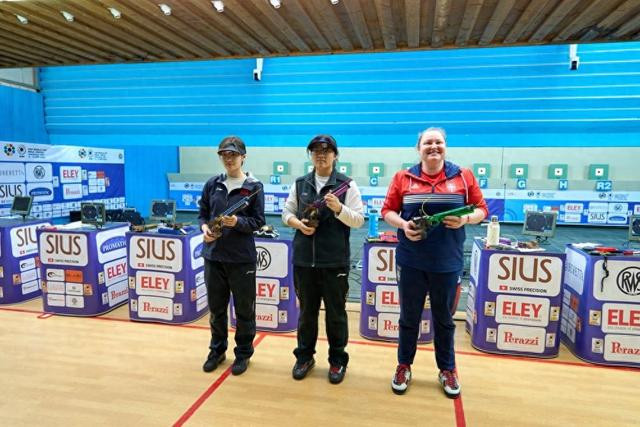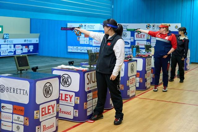 这是本赛季第一站步手枪项目世界杯。在已经结束的8个小项中,中国队横扫6金3银。 当天的女子10米气手枪决赛,21岁的沈奕瑶一路领先,在还剩4发时优势达到惊人的5环。虽然随后一发打出7.4环的远弹,但她迅速调整,最后三发连续命中10.6环,以4.6环的绝对优势夺冠。赛后她在接受国际射联采访时表示,没有想到第一次参加世界杯就能夺冠,这场比赛主要是适应和享受氛围,“做好每一发、享受每一发”。