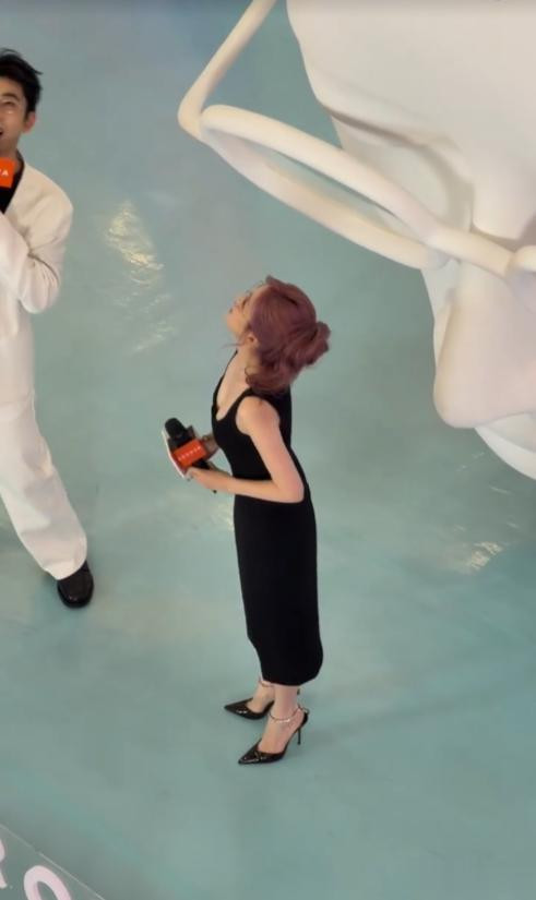 当天,白鹿身穿一件黑色吊带裙,踩着高跟鞋,虽然说打扮的比较普通,但她皮肤白皙、身材高挑,在人群里一眼就能被看到。