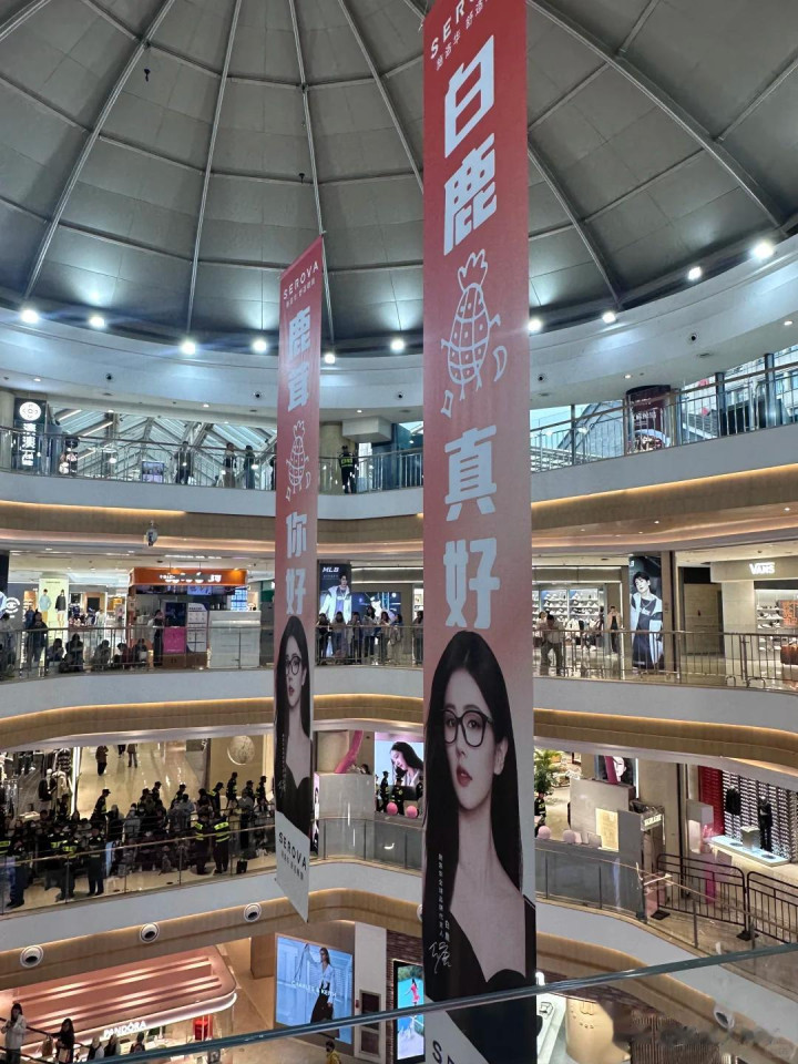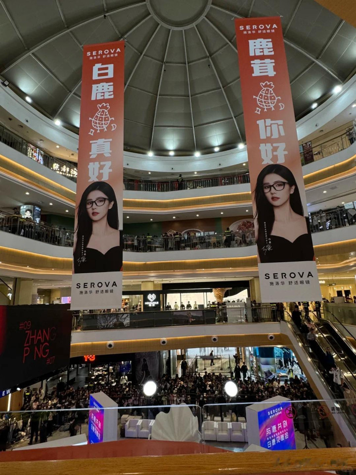 随着名气越来越大,白鹿的商演也多了起来。 近日,她出席杭州的一个线下活动,被不少粉丝偶遇。 从照片中来看,活动位于一个大型商场内,里面还挂了两个超长的广告条幅,上面印着白鹿的画像。