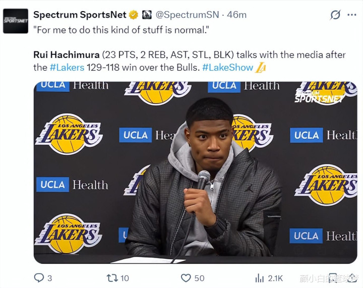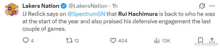 八村垒赛后接受采访,他盛赞了这个团队能看出他很不愿意离开LAL,他说道:我 要表扬我的教练,教练在会议上跟他们谈过了,让勒布朗、卢卡要多给队友球,他们也确实这样做了,他们总是接受教练的建议,所以我们能赢球,每个人都可以触球,每个人都能积极参与进攻,这才是篮球该有的样子。 |