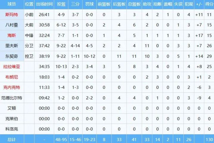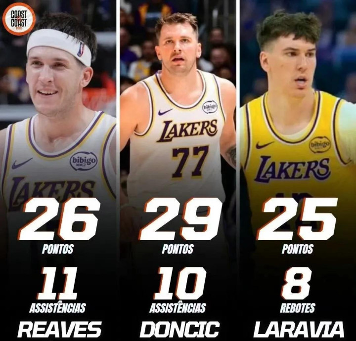 | 东契奇贡献29分11板10助三双,里夫斯26分11助两双到手,拉拉维亚25分进账,合计80分。 三个白人球员,撑起了湖人的现在,目前紫金军团以5胜2负高居西部第三。
