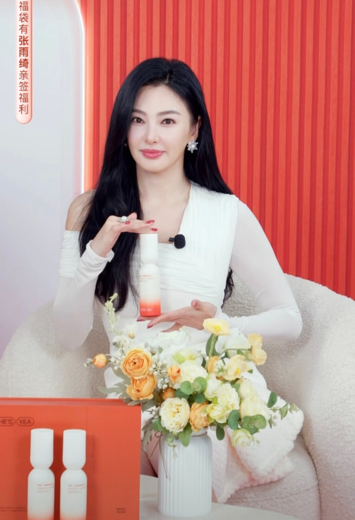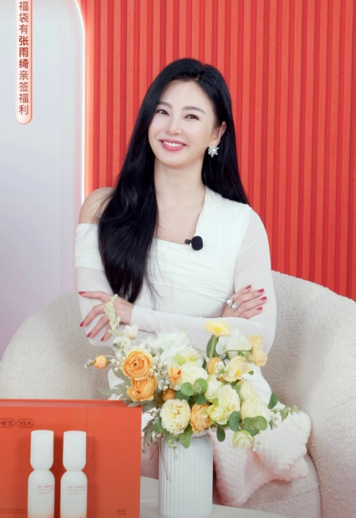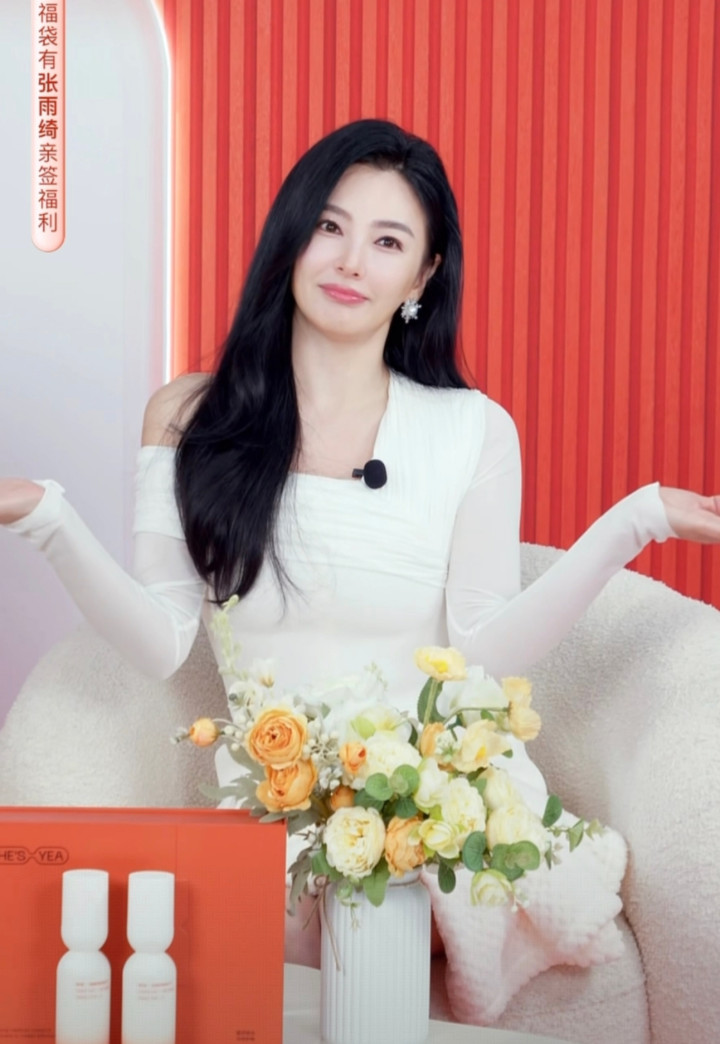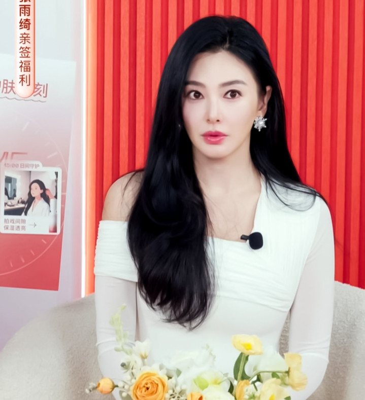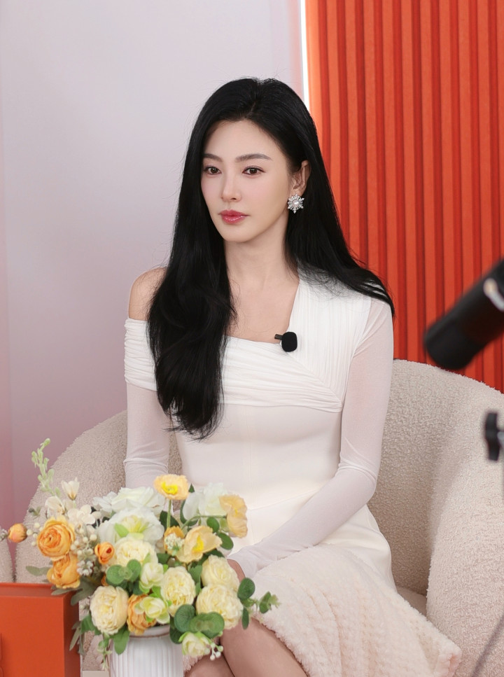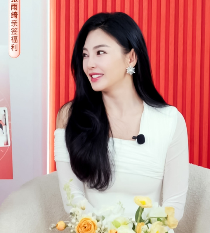张雨绮绷住不要动, 身着白裙, 坐姿优雅, 好端庄的时刻