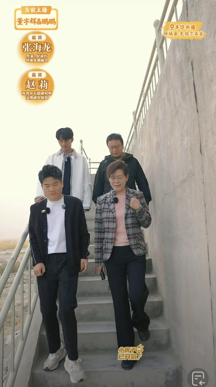 首先一件就是发生在18号新疆行第二天行程的下午,当时宇辉带大家去参观了位于阿克苏拜城县的“克孜儿石窟”,在参观这个克孜儿石窟的过程中,解说嘉宾“克孜尔石窟研究所文博研究员”赵莉女士当着“与辉同行直播间”的镜头给全世界的观众澄清了一件之前一直被大家误解的历史考证错误:那就是克孜尔38号窟里所谓的中国最早“唢呐”壁画是假的!那其实是直管乐器“毕篥”,那壁画后面的喇叭口是后人擅自画上去的,并不是最早壁画的原图。